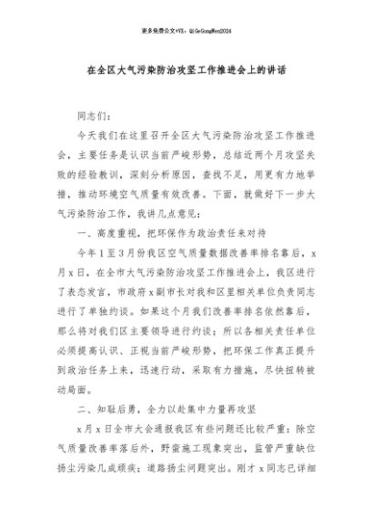 / 【七哥公文】2024年:在全区大气污染防治攻坚工作推进会上的讲话+更多免费公文+VX:QiGeGongWen2024