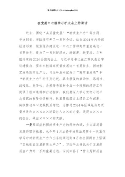 / 【七哥公文】2024年:在党委中心组学习扩大会上的讲话+更多免费公文+VX:QiGeGongWen2024
