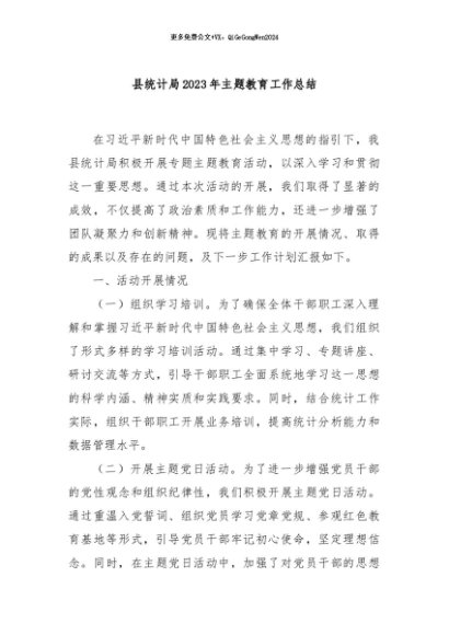 / 【七哥公文】2024年:县统计局2023年主题教育工作总结+更多免费公文+VX:QiGeGongWen2024