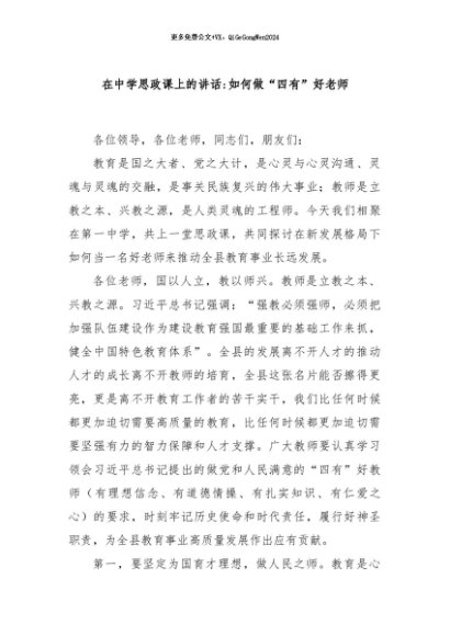 / 【七哥公文】2024年:在中学思政课上的讲话:如何做“四有”好老师+更多免费公文+VX:QiGeGongWen2024