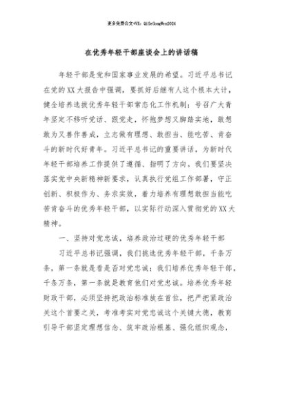 / 【七哥公文】2024年:在优秀年轻干部座谈会上的讲话稿+更多免费公文+VX:QiGeGongWen2024