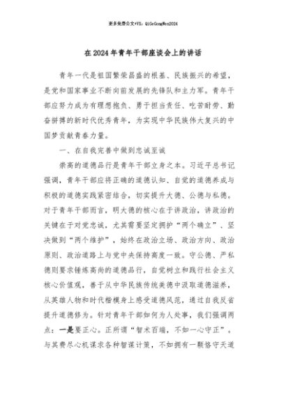 / 【七哥公文】2024年:在2024年青年干部座谈会上的讲话+更多免费公文+VX:QiGeGongWen2024