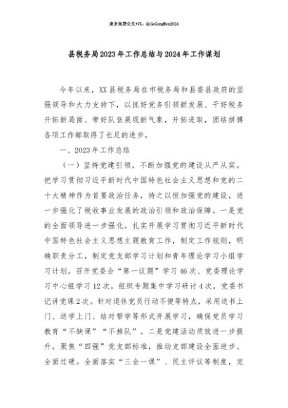 / 【七哥公文】2024年:县税务局2023年工作总结与2024年工作谋划+更多免费公文+VX:QiGeGongWen2024