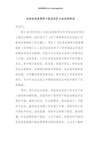 / 【七哥公文】2024年:在依法治县领导小组成员扩大会议的讲话+更多免费公文+VX:QiGeGongWen2024