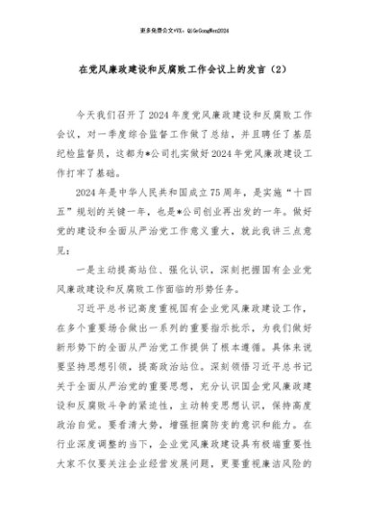 / 【七哥公文】2024年:在党风廉政建设和反腐败工作会议上的发言(2)+更多免费公文+VX:QiGeGongWen2024