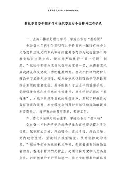 / 【七哥公文】2024年:县纪委监委干部学习中央纪委三次全会精神工作记录+更多免费公文+VX:QiGeGongWen2024