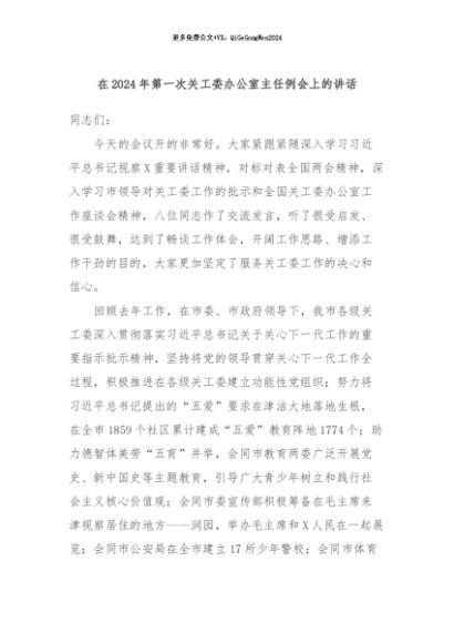 / 【七哥公文】2024年:在2024年第一次关工委办公室主任例会上的讲话+更多免费公文+VX:QiGeGongWen2024