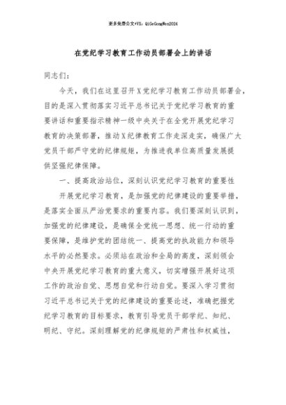 / 【七哥公文】2024年:在党纪学习教育工作动员部署会上的讲话+更多免费公文+VX:QiGeGongWen2024