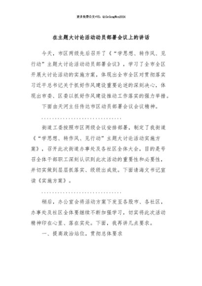 / 【七哥公文】2024年:在主题大讨论活动动员部署会议上的讲话+更多免费公文+VX:QiGeGongWen2024