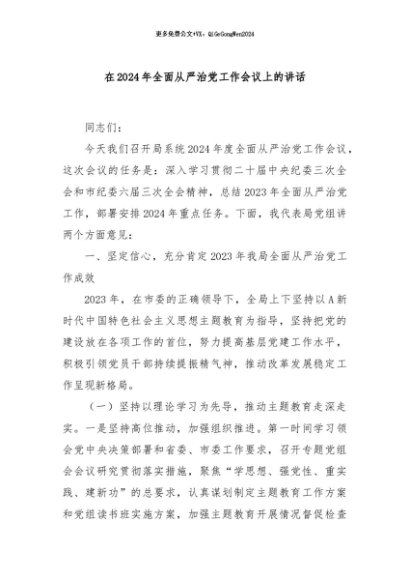 / 【七哥公文】2024年:在2024年全面从严治党工作会议上的讲话+更多免费公文+VX:QiGeGongWen2024