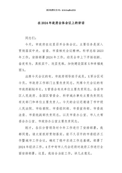 / 【七哥公文】2024年:在2024年政府全体会议上的讲话+更多免费公文+VX:QiGeGongWen2024