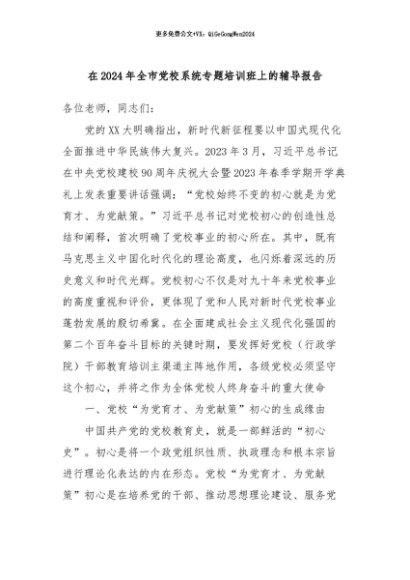 / 【七哥公文】2024年:在2024年全市党校系统专题培训班上的辅导报告+更多免费公文+VX:QiGeGongWen2024