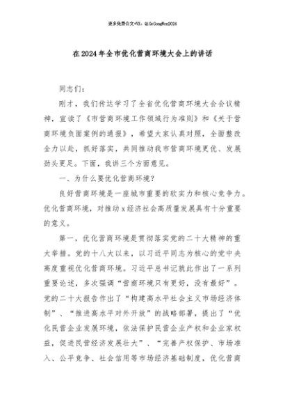 / 【七哥公文】2024年:在2024年全市优化营商环境大会上的讲话+更多免费公文+VX:QiGeGongWen2024