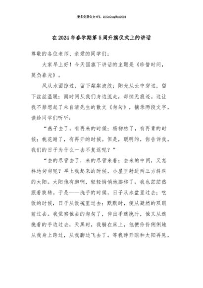 / 【七哥公文】2024年:在2024年春学期第5周升旗仪式上的讲话+更多免费公文+VX:QiGeGongWen2024