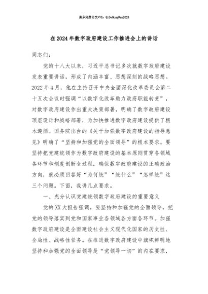 / 【七哥公文】2024年:在2024年数字政府建设工作推进会上的讲话+更多免费公文+VX:QiGeGongWen2024