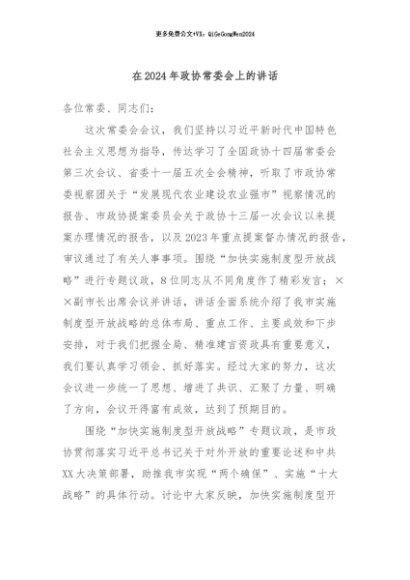 / 【七哥公文】2024年:在2024年政协常委会上的讲话+更多免费公文+VX:QiGeGongWen2024