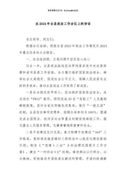 / 【七哥公文】2024年:在2024年全县政法工作会议上的讲话+更多免费公文+VX:QiGeGongWen2024
