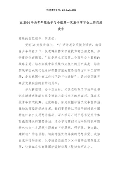 【七哥公文】2024年:在2024年局青年理论学习小组第一次集体学习会上的交流发言+更多免费公文+VX:QiGeGongWen2024