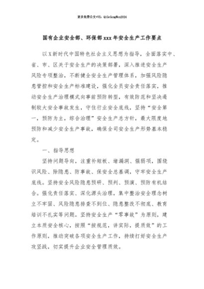 / 【七哥公文】2024年:国有企业安全部、环保部xxx年安全生产工作要点+更多免费公文+VX:QiGeGongWen2024