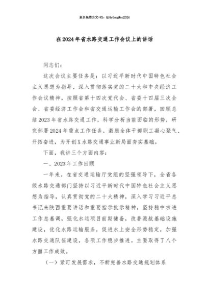 / 【七哥公文】2024年:在2024年省水路交通工作会议上的讲话+更多免费公文+VX:QiGeGongWen2024