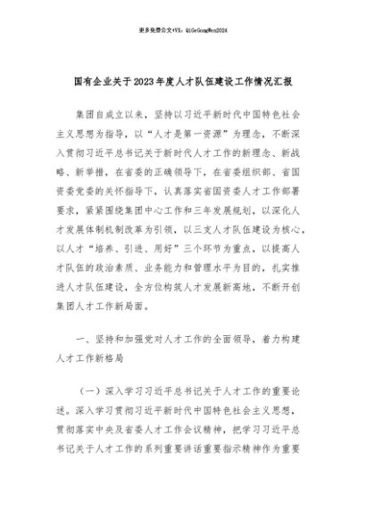 / 【七哥公文】2024年:国有企业关于2023年度人才队伍建设工作情况汇报+更多免费公文+VX:QiGeGongWen2024