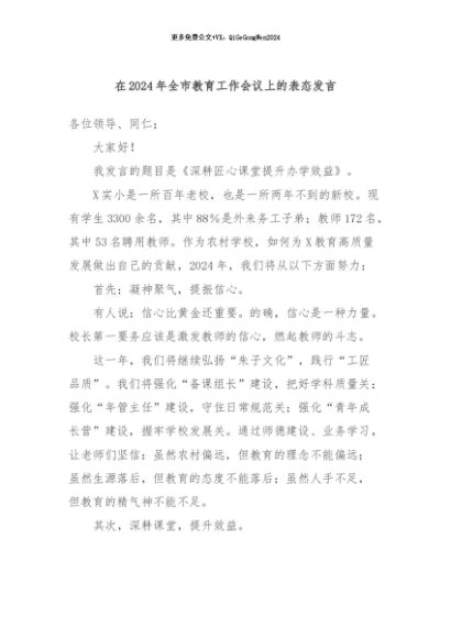/ 【七哥公文】2024年:在2024年全市教育工作会议上的表态发言+更多免费公文+VX:QiGeGongWen2024