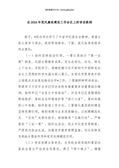 / 【七哥公文】2024年:在2024年党风廉政建设工作会议上的讲话提纲+更多免费公文+VX:QiGeGongWen2024