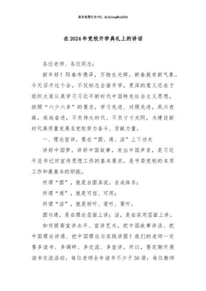 / 【七哥公文】2024年:在2024年党校开学典礼上的讲话+更多免费公文+VX:QiGeGongWen2024