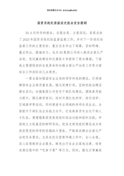 / 【七哥公文】2024年:国资系统纪委座谈交流会发言提纲+更多免费公文+VX:QiGeGongWen2024