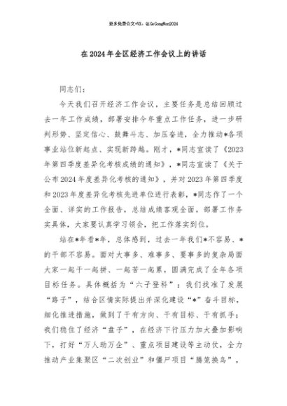 / 【七哥公文】2024年:在2024年全区经济工作会议上的讲话+更多免费公文+VX:QiGeGongWen2024