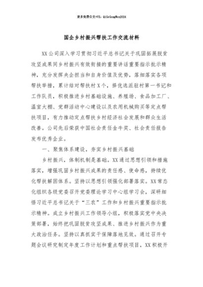 / 【七哥公文】2024年:国企乡村振兴帮扶工作交流材料+更多免费公文+VX:QiGeGongWen2024