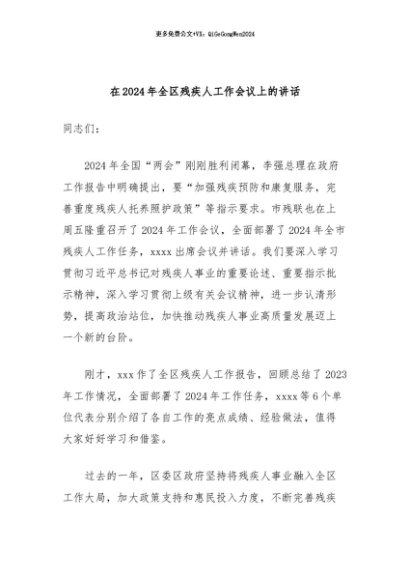 / 【七哥公文】2024年:在2024年全区残疾人工作会议上的讲话+更多免费公文+VX:QiGeGongWen2024