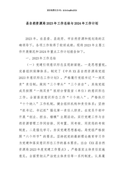 【七哥公文】2024年:县自然资源局2023年工作总结与2024年工作计划+更多免费公文+VX:QiGeGongWen2024