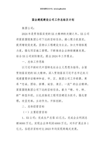 / 【七哥公文】2024年:国企建筑建设公司工作总结及计划+更多免费公文+VX:QiGeGongWen2024