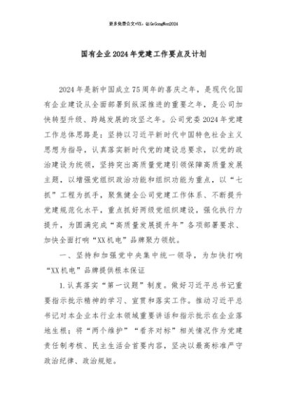 / 【七哥公文】2024年:国有企业2024年党建工作要点及计划+更多免费公文+VX:QiGeGongWen2024