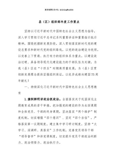 / 【七哥公文】2024年:县(区)组织部年度工作要点+更多免费公文+VX:QiGeGongWen2024