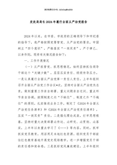 / 【七哥公文】2024年:发改局局长2024年履行全面从严治党报告+更多免费公文+VX:QiGeGongWen2024