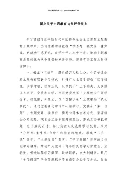 / 【七哥公文】2024年:国企关于主题教育总结评估报告.+更多免费公文+VX:QiGeGongWen2024