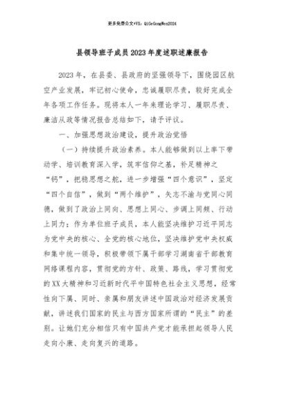 / 【七哥公文】2024年:县领导班子成员2023年度述职述廉报告+更多免费公文+VX:QiGeGongWen2024