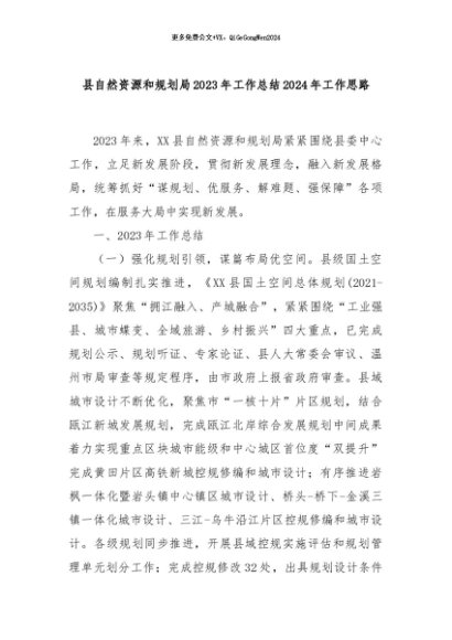 【七哥公文】2024年:县自然资源和规划局2023年工作总结2024年工作思路+更多免费公文+VX:QiGeGongWen2024