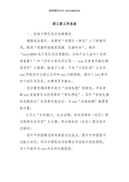 / 【七哥公文】2024年:团工委工作总结+更多免费公文+VX:QiGeGongWen2024