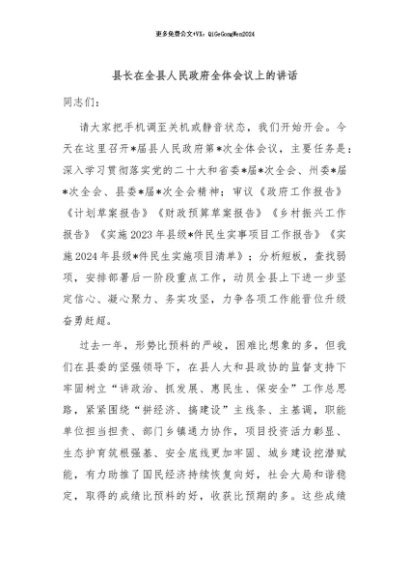 / 【七哥公文】2024年:县长在全县人民政府全体会议上的讲话+更多免费公文+VX:QiGeGongWen2024