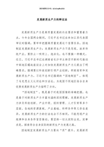 【七哥公文】2024年:发展新质生产力的辩证法+更多免费公文+VX:QiGeGongWen2024