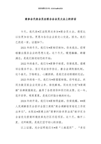 / 【七哥公文】2024年:商参会代表会员在联合会会员大会上的讲话+更多免费公文+VX:QiGeGongWen2024