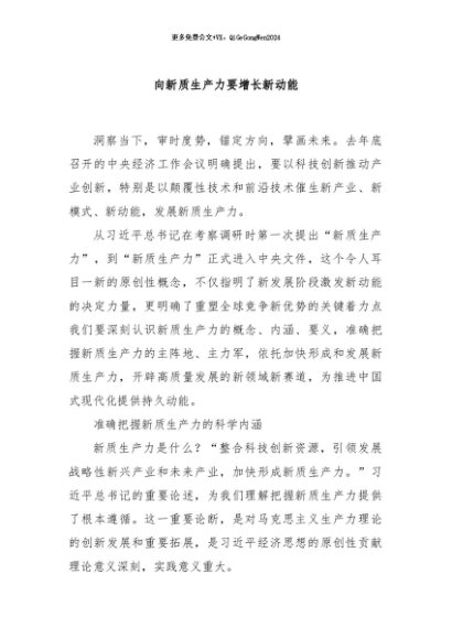 【七哥公文】2024年:向新质生产力要增长新动能+更多免费公文+VX:QiGeGongWen2024