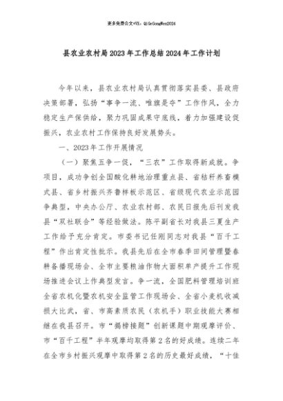 / 【七哥公文】2024年:县农业农村局2023年工作总结2024年工作计划+更多免费公文+VX:QiGeGongWen2024