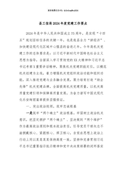 / 【七哥公文】2024年:县工信局2024年度党建工作要点+更多免费公文+VX:QiGeGongWen2024