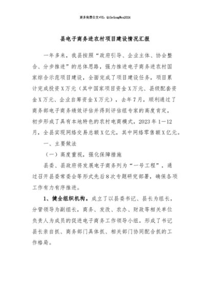 / 【七哥公文】2024年:县电子商务进农村项目建设情况汇报+更多免费公文+VX:QiGeGongWen2024