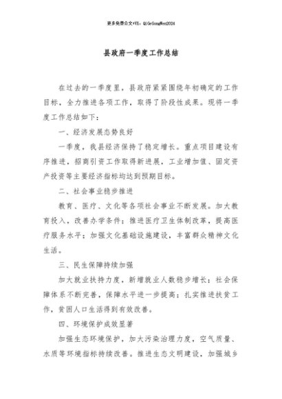 / 【七哥公文】2024年:县政府一季度工作总结+更多免费公文+VX:QiGeGongWen2024