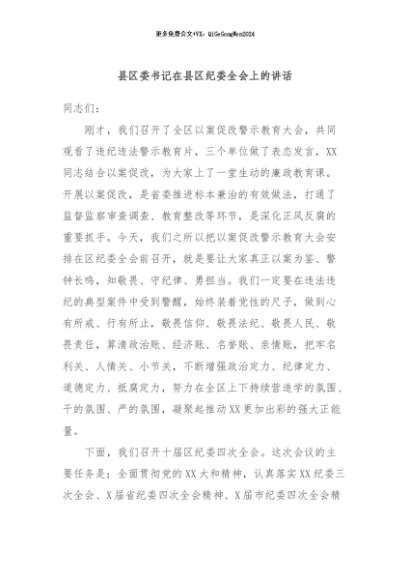 / 【七哥公文】2024年:县区委书记在县区纪委全会上的讲话+更多免费公文+VX:QiGeGongWen2024